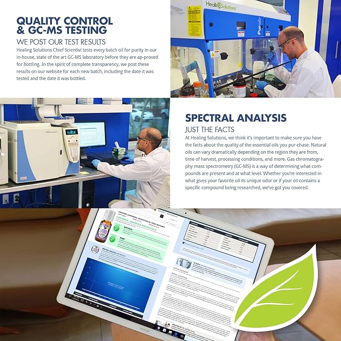 - PURITY PROMISE: Healing Solutions Offers a Purity Promise - our commitment to you and all of our customers that the oils we sell have been GCMS tested and analyzed for purity and lack of adulterants