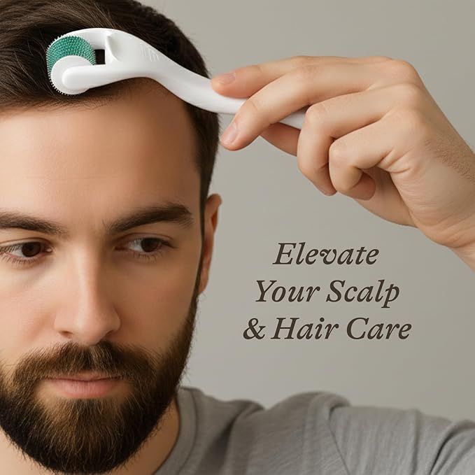 Derma Roller for Scalp, Beard & Face - Microneedling Roller with 540 Titanium 0.25mm Micro Needles, Microneedle Tool for Hair, Skincare Tools for Women & Men