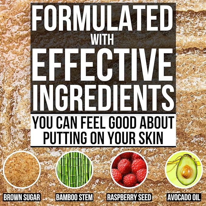 - COMMITMENT TO CLEAN AND NATURAL INGREDIENTS - Embrace our commitment to natural, helpful skin care with this men's sugar scrub. Free from harsh chemicals and enriched with nutrients from natural sources like avocado oil and bamboo stem powder, this scrub acts as both a hand exfoliator and foot exfoliator scrub, promoting healthier skin without compromising on quality.