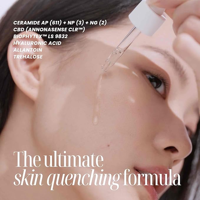 - THE ULTIMATE SKIN QUENCHING FORMULA: Infused with Hyaluronic Acid, three types of Ceramides - AP (611) + NP (3) + NG (2) and award winning Annona Cherimola Fruit Extract - AnnonaSense CLR. Designed to replenish moisture, regulate oil production, relieve skin irritations and make skin barriers great again.