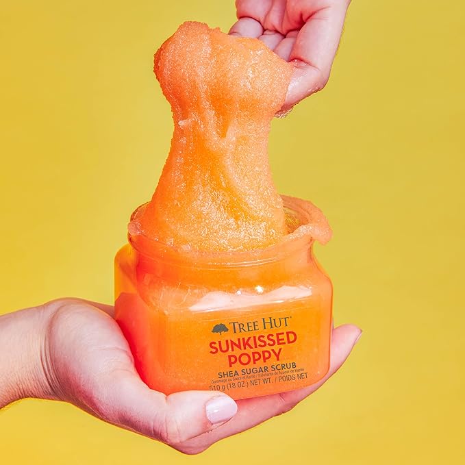 Tree Hut Sunkissed Poppy Shea Sugar Scrub | Exfoliating Body Scrub Removes Dead, Dry Skin for a Soft & Hydrated Feel | Nourishing Essential Body Care | 18 fl oz.