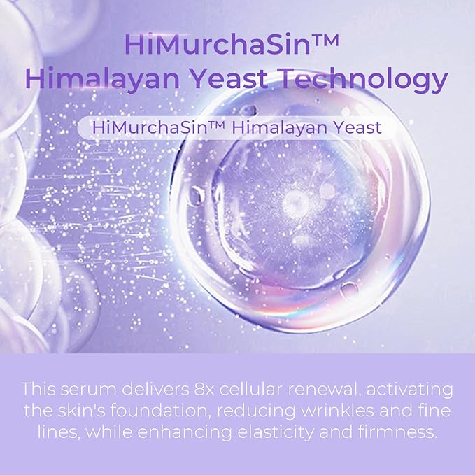 - Revolutionary Anti-Aging Formula Infused with HiMurchaSin Himalayan Yeast, this serum provides intensive cellular renewal, visibly reducing wrinkles and fine lines while improving skin elasticity and firmness within one week.