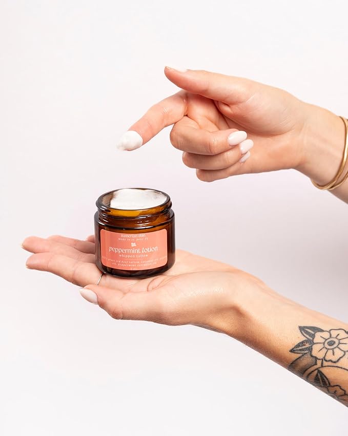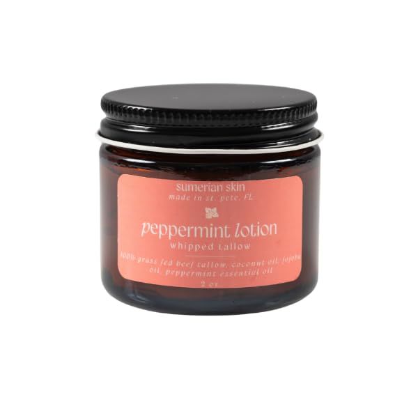 100% Grass Fed & Organic Whipped Beef Tallow Lotion - All Natural - Body + Face Mosturizer for All Skin Types (2 Ounce, Peppermint)